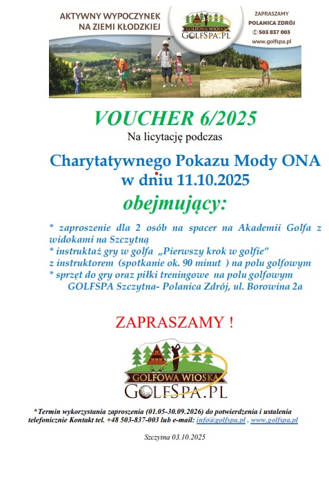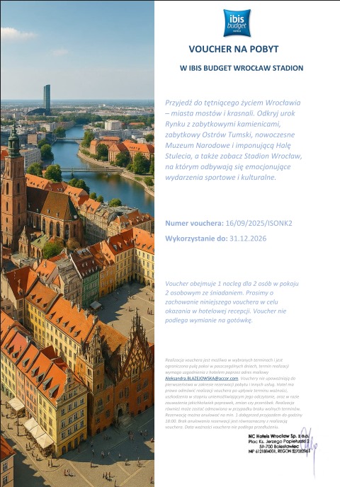 1. Voucher na projekt i uszycie kreacji przez projektanta Kamila Hale 10. Licytacja logotypu zwycięscy licytacji na klacie Kamila Bednarka na gali wieczoru 17.01.2026 100. Voucher na sesję zdjęciową z fotograf Karoliną Bryś w strojach projektanta mody Kamila Hala 101. Koszulka z autografami siatkarzy ZAKSA Kędzierz Koźle 102. Kolaż autorstwa Sylwii Królewicz Dyl z Fundacji Pełną Piersią 103. Lampa autorstwa Piotra Sikorskiego 104. Obraz Utkana z miłości autorstwa Małgorzaty Frącek 105. Voucher na weekendowy pobyt w wybranym apartamencie we Wrocławiu 106. Thermomix® TM7 – wielofunkcyjny robot kuchenny 107. Voucher na kolację dla dwóch osób w restauracji Przystań&Marina 108. Voucher na obóz letni Lato 2026 roku z ekipą Twojej Ferajny 109. Fotodruk Zdzisława Beksińskiego wraz z albumem 11. Oprawki do okularów przygotowane dla Jurka Owsiaka i Wielkiej Orkiestry Świątecznej Pomocy. Edycja 2025. 110. Koszulka z autografem WKS Śląsk 111. Voucher na sesję treningu mentalnego z Małgorzatą Zakrzywaj 112. Voucher na sesję Psychodietetyki z Małgorzatą Zakrzywaj 113. 114. 115. 116. 117.118. Voucher na usługi porządkowe u Pani Pomocna. 119. Koszulka z autografem siatkarza Aleksandra Śliwki 12. Dwie wejściówki na główny wyścig zawodów na Partynicach 120. Zestaw biżuterii wykonany z naturalnych kamieni autorstwa Bartka Paszkiewicza 121. 122. Voucher na zakupy w Bandurska Design 123. Voucher na masaż w Aktywna Rehabilitacja we Wrocławiu 124. Drewniana pozytywka 125. Zaproszenie dla 2 osób na spacer na Akademii Golfa z widokami na urokliwą Szczytną – serce Ziemi Kłodzkiej , połączone z instruktażem gry w golfa. 126. Voucher na weekend w zgodzie z naturą dla dwóch osób w Soblówka 404 Apartamenty 127.Voucher na poradę prawną RODO lub prawa rodzinnego w kancelarii OptimaLex Agnieszka Templin, Ireneusz Broś. 128. Koszulka z autografami wszystkich zawodników WTS Sparta obecnych brązowych medalistów Drużynowych Mistrzostw Polski 129. Naszyjnik marki Sordyl Jewellery 13. PLOPP STANDARD MAGENTA na miesiąc walki z walki rakiem piersi 130. Naszyjnik marki Sordyl Jewellery 131. Książka z autografem Marcina Margielewskiego 132. Pobyt dla dwóch osób na dwie doby z wyżywieniem w Hotelu Mona Liza w Kołobrzegu- Podczelu 133. Trzy obrazy inspirowane kreacjami Kamila Hali autorstwa Urszuli Smolarz – Ambasadorki Fundacji La vie La vie 134. Koszulka Weroniki Centka-Tietianiec 135. Elegancki zestaw biżuterii ręcznie robionej – obsydian, hematyt, turmalin 136. Ręcznie robiony zestaw biżuterii – ametyst i hematyt 137. Ręcznie robiona girlanda boho – drewniane korale i gwiazdki z miedzianego drutu 138. Vocher -sesji Treningu Mentalnego – czas trwania 90 minut u Doroty Koneckiej 139. Zestaw kosmetyków OVI LINE Collagen Superme 140. Książka z autografem Ani Wendzikowskiej 141. 5 treningów personalnych EMS w Forma4Life 142.143.144.145.146 Warsztaty makijażu 147. „Ocean tajemnicy” malarki 148. Ceramik od studia Ceramic Studio MGart 149. Obraz COLOR STRENGTH autorstwa malarza Łukasza Jankiewicza 150. ….? 151. Rysunek – Baba Polska – Fabryka Kiczu 152. Rysunek – Dziad Polski – Fabryka Kiczu 153. Rysunek – Abstrakcja 2 – Fabryka Kiczu 154. Rysunek Abstrakcja 3 Fabryka Kiczu 155. Rysunek – Domki 1 – Fabryka kiczu 156. Wazon 157. Obraz Sandry Krupa 158. PIERWSZA. Jak uwolnić się od masek i stanąć po swojej stronie. Książka Anny Hazuka 159. DRUGA. Najbardziej niezwykła podróż ku sobie. Książka Anny Hazuka 16.17.18. Zestaw kosmetyków dr Ireny Eris 160. Krasnoludka Amazonka Fundacji La vie La vie 19. Voucher do Vertigo Jazz Club & Restaurant 2. Obraz RZEŹBA W OGRODZIE 2 autorstwa malarza Rafała Dalka 20. Obraz Przemiana – Agaty Dziedzińskiej-Tekiela 21. Voucher na Pakiet Lifting twarzy multifalą Thuzzle dr Anna Kostka 22. Voucher Pakiet „ Soft Lift’’ czyli zestaw 4 zabiegów wykonanych w określonych odstępach czasu dr Anna Kostka 23. 24. Voucher na jeden zabieg przy użyciu nici kolagenowych i fibryny dr Anna Kostka 25. Płyta winylowa z autografem Natalii Przybysz 26. Kimono projektu Elwiry Brezwan 27. Książka Chłopki z autografem autorki Joanny Kuciel-Frydryszak 28. Obraz „Droga, którą musisz przebyć” Pauliny Kubuj 29. Obraz Zielone Pole Nadziei malarki Patrycji Załęskiej 3. Kolczyki z diamentami 30. Książka „50 Osobistości Biznesu. Od serca dla serca” 31. Obraz Zabawa w życie II – malarza Michała Czejgisa 32. Fotel 33. Obraz ONA WŚRÓD NICH malarki Magdaleny Drytkiewicz 34. Rzeźba Laury Gizickiej 35. Champagne Goussard-Delagneau 36. Obraz Patefon malarza Tomasza Wojtyska 37. Koszulka z autografem najlepszego polskiego golfisty Adriana Meronka 38. Obraz haftowany Konie 39. Obraz Boso po trawie. 4. Piłka z autografem siatkarza Bartosza Kurka 40. Kolaż autorstwa Kiliany Dizner 41. Kolaż autorstwa Kiliany Dizner 42. Kolaż autorstwa Kiliany Dizner 43. Kolaż autorstwa Kiliany Dizner 44. Grafika Katarzyny Zygadlewicz 45. Grafika Andrzeja Mleczko 46. Grafika Andrzeja Mleczko 47. Grafika Andrzeja Mleczko 48. Grafika Andrzeja Mleczko 49. Voucher dla dwóch osób na wybrany mecz siatkówki Trefl Gdańsk ze spotkaniem z Mariuszem Wlazły mistrzem świata w siatkówce 5. Rzeźba La vie La vie z cyklu Ślady Istnienia Katarzyny Krej 50. Koszulka z autografem Reziego 51. Wisior ONA – autorka Iwona Pawłowska 52. Voucher na pobyt w Hiltonie w Świnoujściu o wartości 1000 PLN 53. 54. Voucher na zabiegi w salonie Bellissima we Wrocławiu 55. Zabawka dla niemowlaka 56. 57.58 Trampki różowe, żółte, czerwone projektu artysty Rafała Dalka 59. 60. 61 Voucher na pobyt we Włoszech 6. Obraz autorstwa Grzegorza Dratwy 62. Voucher na sesję treningu mentalnego z Anetą Opałą 63.64.65.66.67.68.69.70.71.72 Książka Tomasza Wasilkowskiego „Mistrzowski Umysł. Mój tata to geniusz” 7. Voucher na badanie genetyczne WES dla dwóch osób 73.74.75 Voucher na dowolnie wybrany masa