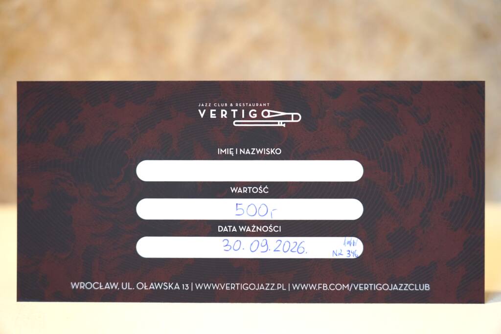 Vertigo Jazz Club & Restaurant to miejsce stworzone z myślą o tych, którzy cenią jakość – zarówno w muzyce, jak i w atmosferze. To jedyny taki klub we Wrocławiu i regionie – elegancki, kameralny, profesjonalnie przygotowany pod względem akustyki, sceny i komfortu Gości. Każdy element wnętrza został zaprojektowany z dbałością o detal, by koncerty i wydarzenia mogły odbywać się w najlepszych warunkach. Choć naszą bazą jest jazz, na scenie Vertigo regularnie pojawiają się także blues, soul, muzyka alternatywna, burleska oraz improwizowany teatr komediowy. Dzięki temu klub żyje przez cały tydzień – od koncertów klubowych, przez jam sessions, po specjalne wydarzenia.